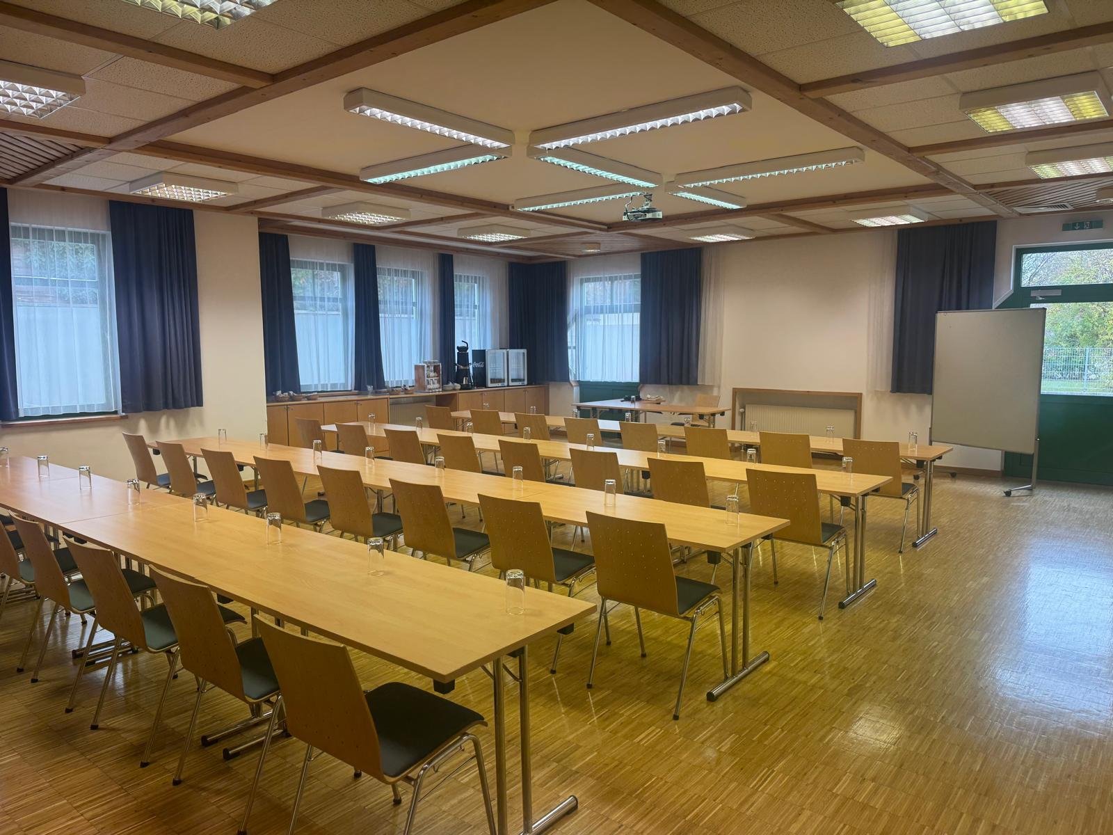 Sollte Dein Fokus eher auf Sitzungen oder Schulungen liegen, ist der kleine Saal des Steinfeld Zentrums die perfekte Wahl. Rund 90 qm bieten Dir und Deinen Mitarbeitern die Möglichkeit zur Weiterbildung in entspannter Atmosphäre. Natürlich kann dieser Saal auch für Feiern im kleineren Rahmen verwendet werden. Bei schönem Wetter locken der Festplatz vor dem Steinfeld Zentrum sowie die großzügig angelegte Freiterrasse im Anschluss an den großen Saal zum Verweilen und Feiern.